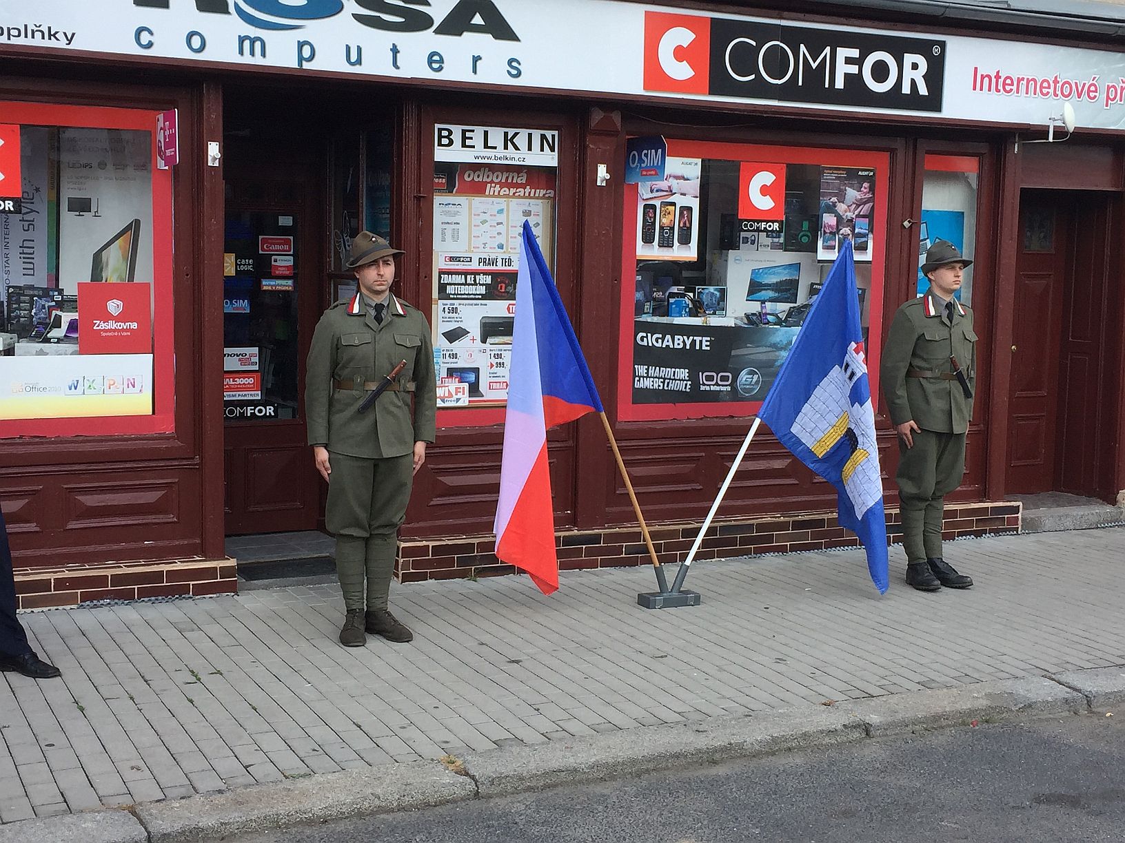 Symbolický památník před domem s čestnou stráží ČSOL.
