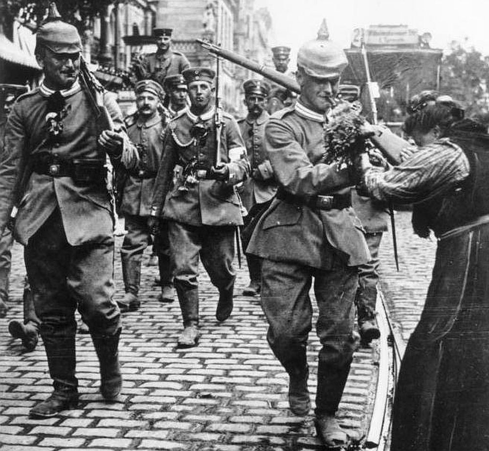 Nadšení vojáci císařského Německa vyrážejí v roce 1914 na frontu (1)