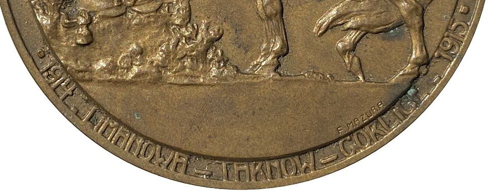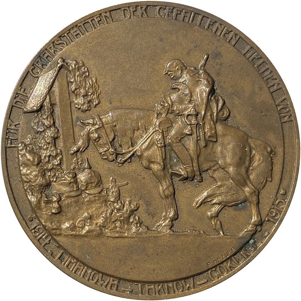 V roce 1915 válka pokračovala. Nadšení prvních měsíců vystřídaly obavy z budoucnosti a smutek za těmi, kteří se už nikdy nevrátí. Toto téma proniklo též do medailérství. Do sbírky se mi podařilo získat medaili vydanou v Rakousko-Uhersku za účelem připomenutí ztracených životů vojáků v letech 1914-1915. Materiál bronz. Hmotnost mnou drženého exempláře je 79,16g. Průměr osciluje od 60,6 mm do 60,8 mm.