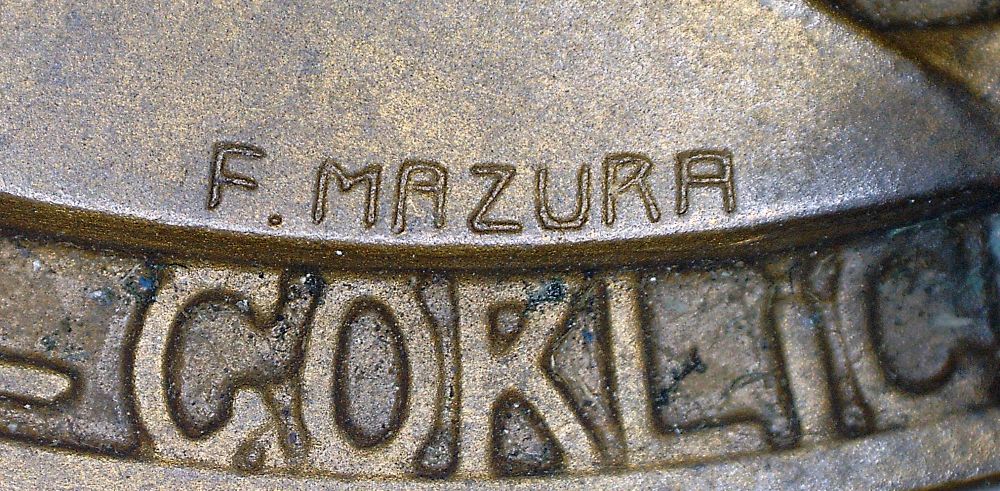 Plastika se nachází pouze z jedné strany, zatím co ta druhá je plochá. Z toho lze usuzovat, že původně byla v nějaké etuji, případně krabičce. Ve středu medaile je vyvýšené pole kruhového tvaru. Hlavní figuru představuje voják na koni, sklánějící se spolu se zvířetem před památníkem. Bezesporu vyjádření úcty k padlým. Voják je vystrojen do pole, vybaven karabinou i šavlí. V ruce třímá přilbu C. a K. dragounů (Rakousko-Uherská jízda). Zajímavý prvek lze vidět nad patou pomníku. Na šavli v pochvě jsou vedle sebe položeny Rakousko-Uherská polní čepice a Německá přilba, známá Pickelhaube. Toto spojení demonstruje válečné spojenectví obou císařství. Nás nejvíce zajímá polní čepice, neboť ji přirozeně měli na hlavách vojáci R-U armády pocházející z českých zemí. Jedná se o provedení M.1908 Hechtgrau s černým koženým štítkem a mosazným odznakem nesoucím iniciály mocnáře FJI (František Josef I.). Pod nohami koně vpravo nalezneme značku medailéra „F.MAZURA“. Byl jím umělecký sochař Franz Mazura z Vídně.