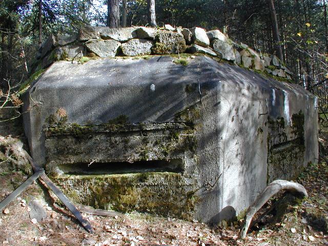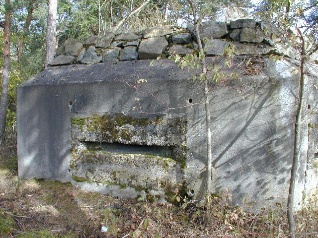 Další zajímavou variantou poválečných úprav bylo vyskládání asi 30 cm silné vrstvy větších kamenů na střeše objektu, následně zpevněných zálivkou nekvalitního betonu. Vystupovaly z ní dráty, obvykle nad čelní partii pevnůstky. Pravděpodobně nesloužily jako armatura, protože jsou obdobou háků zasazených do stěn. Na rozdíl od nich měly přesné rozměry a to 10x10 cm. Vrstva kamenů a betonu mohla sloužit jako dodatečná ochrana stropnice objektu i k jeho maskování přírodním materiálem - kamením. V době průzkumu jí překrývala tenká vrstva humusu s porostem. V kamenech šlo objevit prostor pro periskop, který však byl někdy zaslepen.