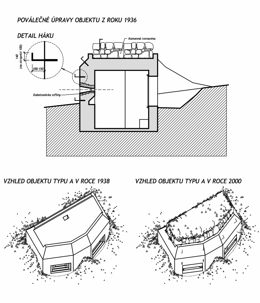 Poválečné úpravy lehkých objektů z roku 1936 stavebního úseku VIIa Stříbro-Jih
