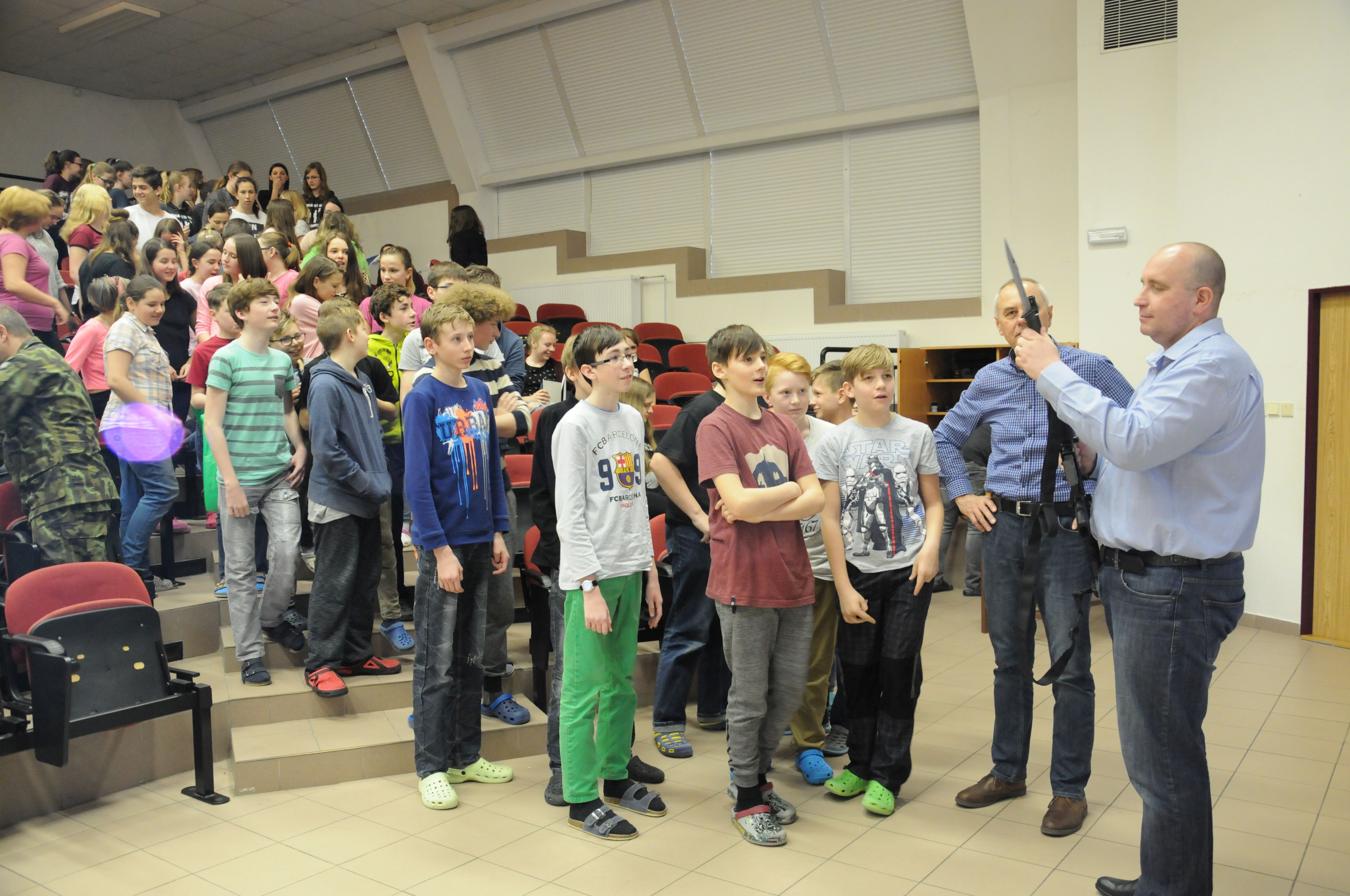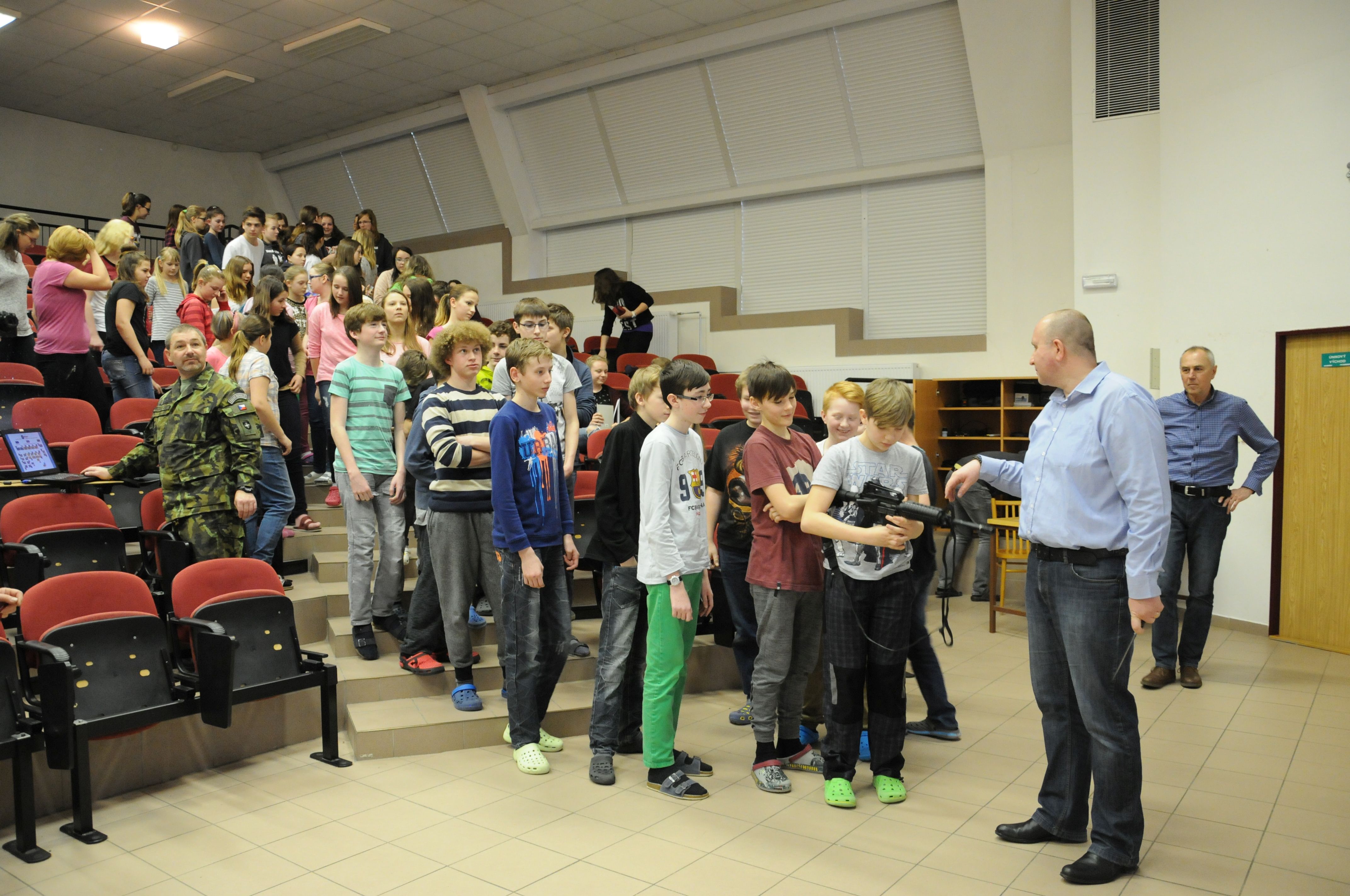 Poutavý výklad pplk.Líbezného v aule ZŠ