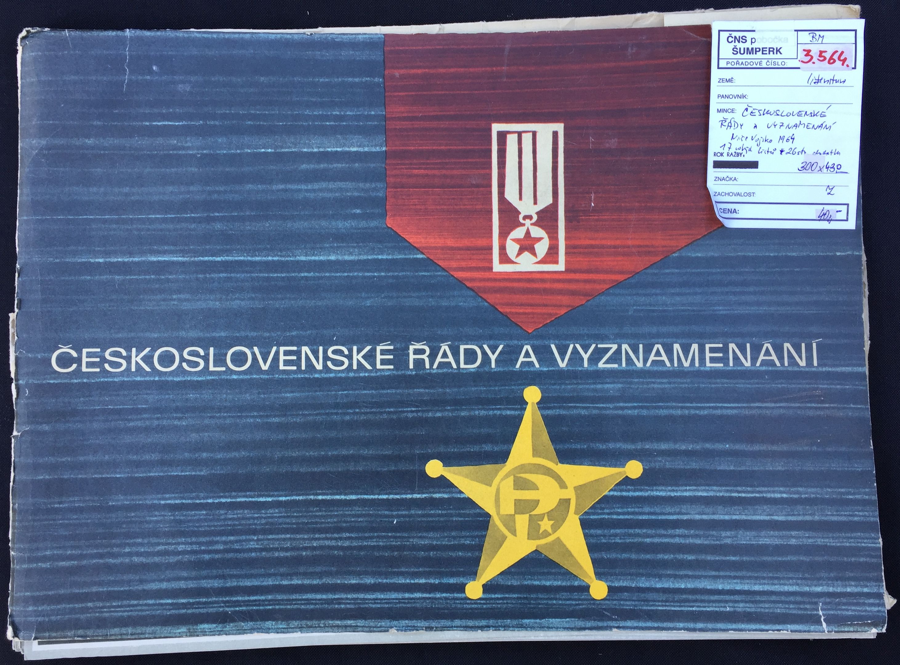 Z aukce pro členy České Numismatické Společnosti se mi podařilo získat poměrně zachovalý kus publikace o československých řádech a vyznamenáních. Jedná se o rozměrově rozsáhlejší dílo autorské dvojice Dr. Vladimíra Macháčka a pplk. Václava Amorta, vydané nakladatelstvím Naše vojsko v roce 1964 nákladem sedmi tisíc kusů pod názvem „ČESKOSLOVENSKÉ ŘÁDY A VYZNAMENÁNÍ“. Číslo publikace v řadě: 2985. Dle informace uvedené přímo v knize, byla do tisku zadána již v roce 1962. Nicméně obsahuje data i z let 1963/64, což vyvolává dojem doplnění informací před finálním tiskem. Obsah je poplatný době vzniku, přesněji řečeno tehdejším politickým poměrům.
