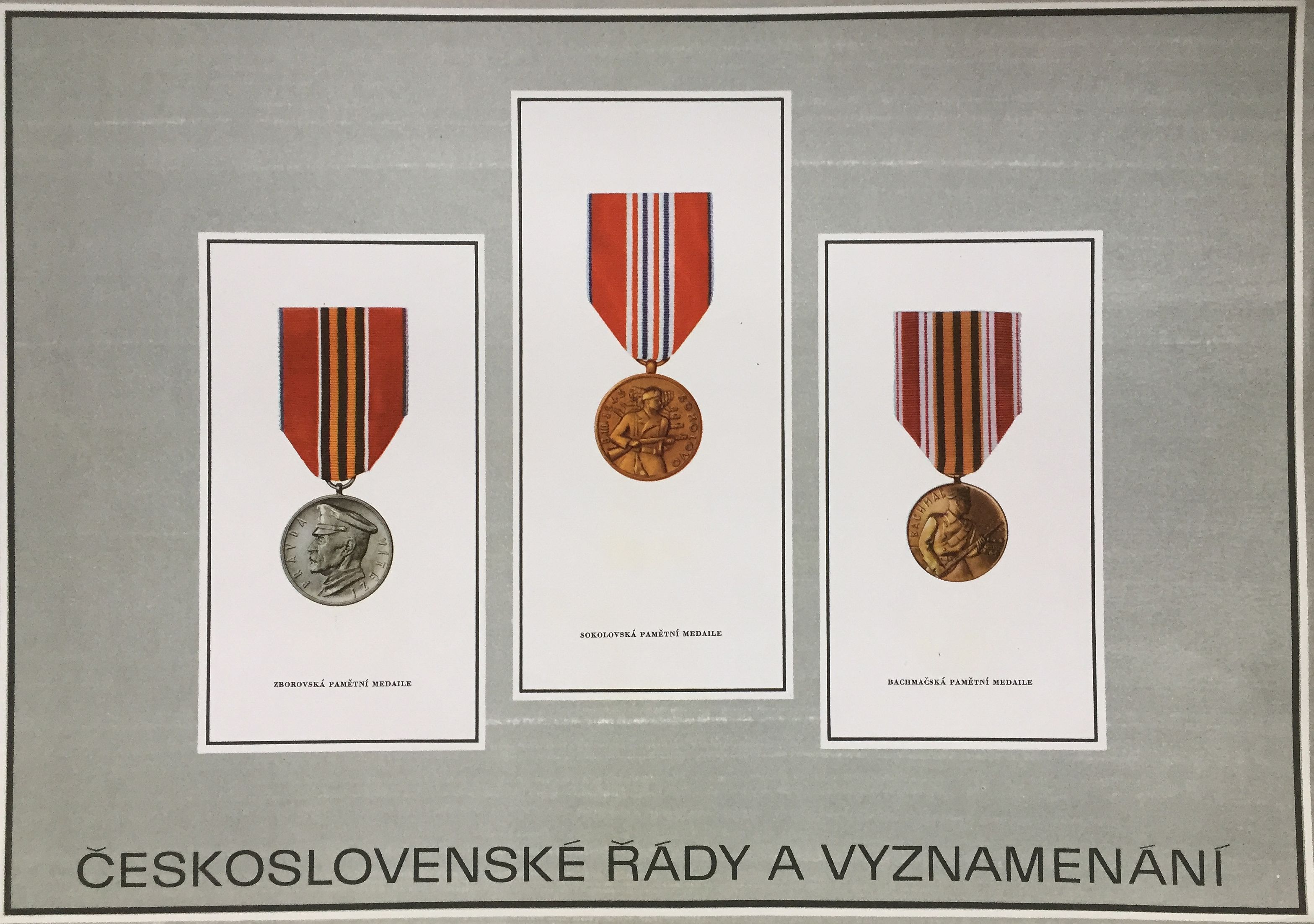 Historická vojenská vyznamenání, pamětní medaile a odznaky *Vojenská vyznamenání udělovaná za vojenské zásluhy na osvobození Československa *Vojenské pamětní medaile a odznaky *Pamětní odznaky, udělované za zásluhy o osvobození Československa mimo organizované vojenské jednotky Vojenská vyznamenání, která se v současné době udělují za vojenské zásluhy a hrdinské činy Vyznamenání za občanské zásluhy Vyznamenání za vzornou dlouholetou a nepřetržitou práci v oboru Československý řád pro cizince