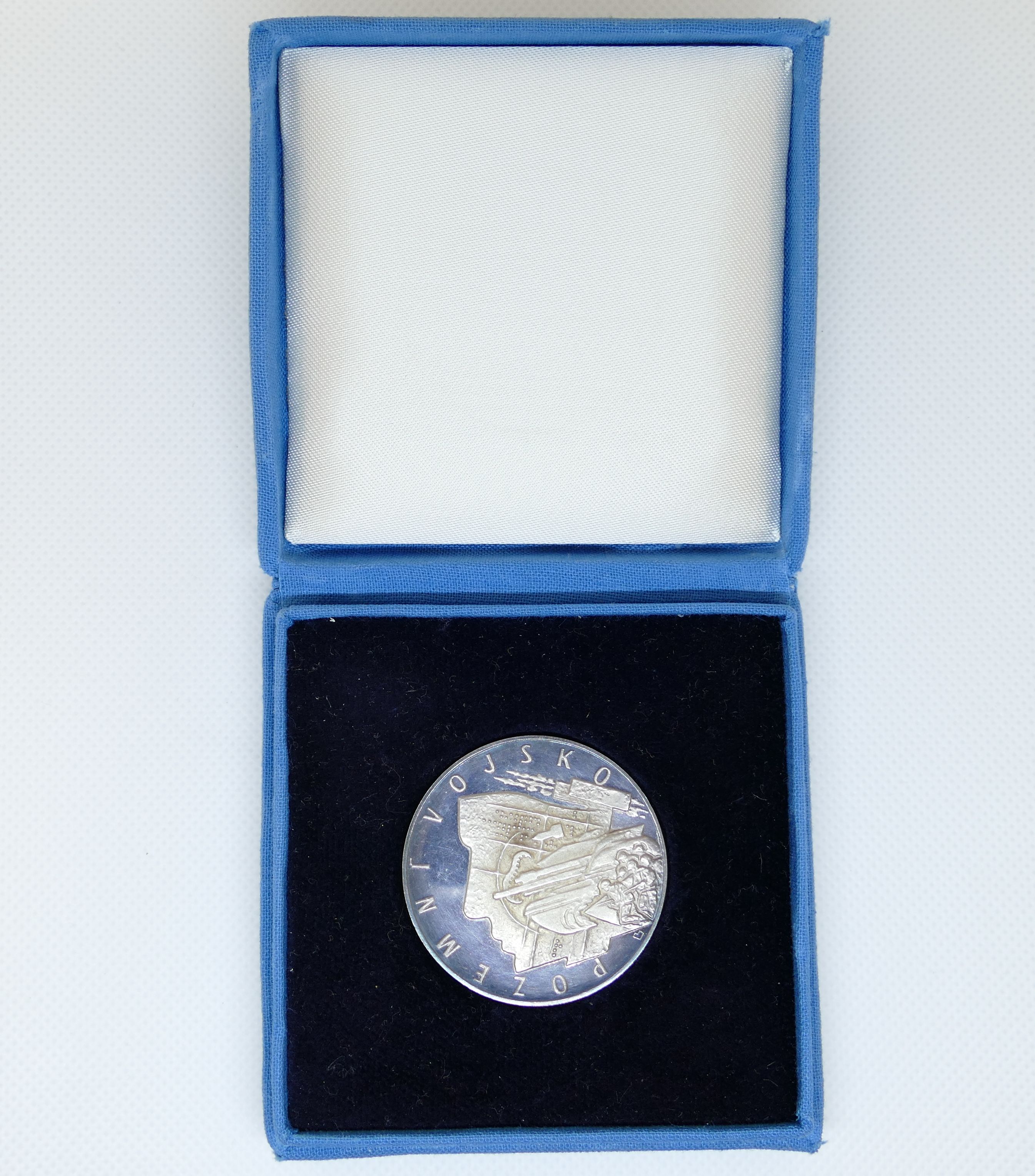 Parametry medaile jsou prakticky shodné se sesterským provedením. Je oboustranně ražená o průměru 40 mm, šířce 3,56 mm a váze 32,1 g - přičemž váží o rovné dva gramy více než vzdušné síly.. Materiál je tombak – slitina mědi (84–90 %) a zinku (10–16 %) – řekněme kvalitnější mosaz, používaná ve šperkařství. Povrch byl postříbřen. Hodnota medaile je tedy sběratelská. Nejedná se o cenný kov. Původní vyleštění do provedení „proof“ je patrné jen částečně. Jak jsem uvedl výše, medaile byla vykoupena v krabičce staršího provedení. Stejně jako u medaile vzdušných sil, ani v tomto případě není k dispozici certifikát s numismatickými údaji. Medaile ho podle všeho ani neměly.