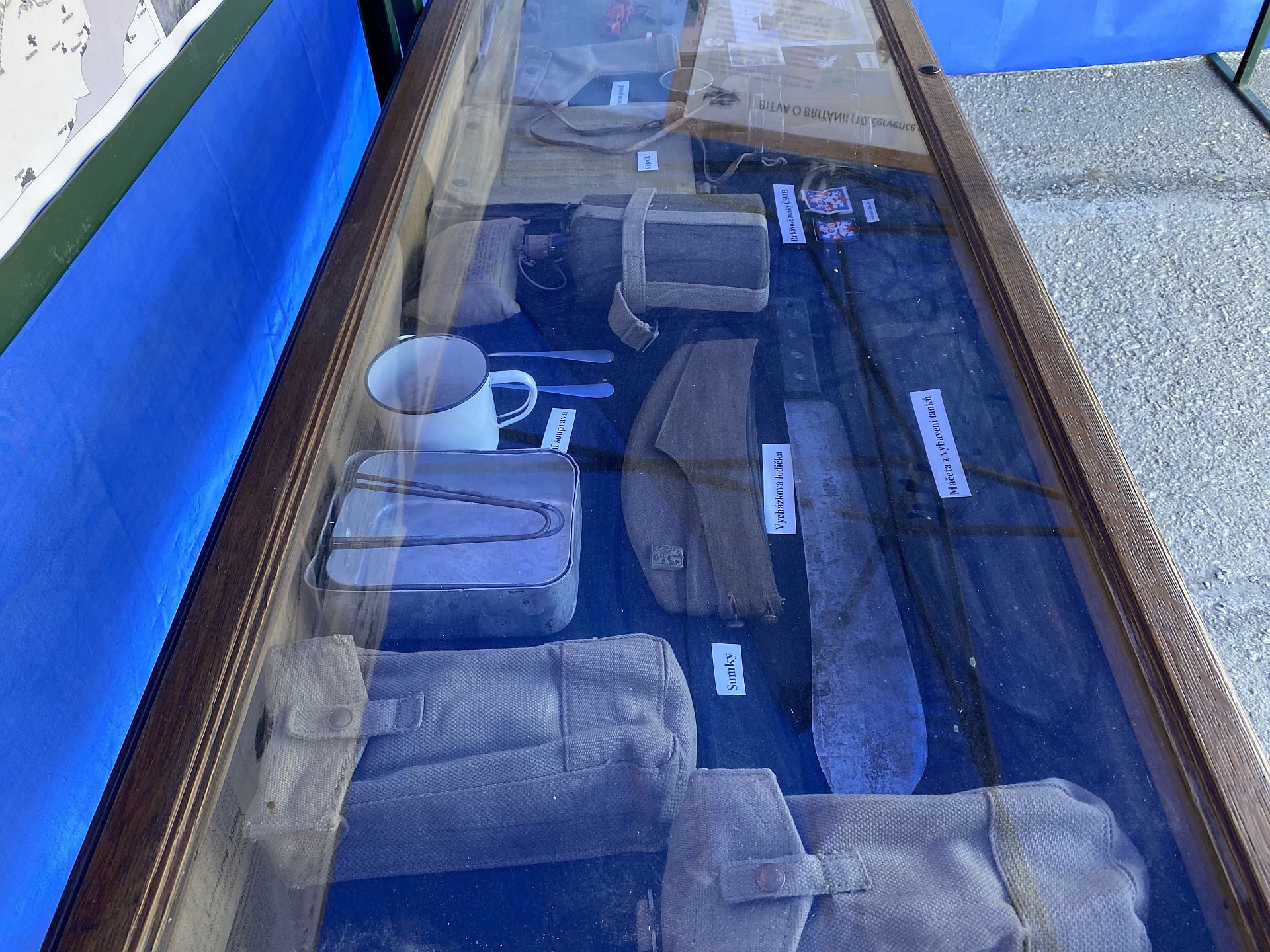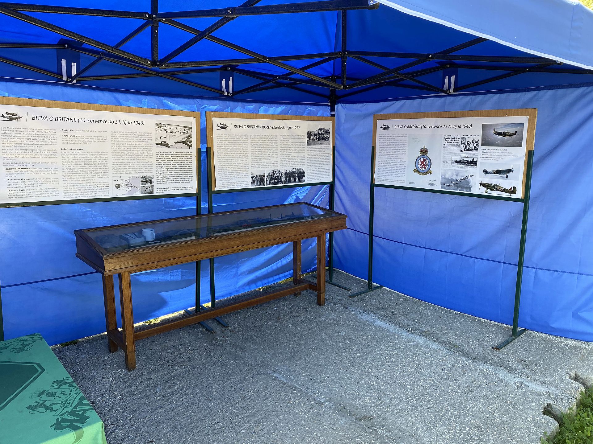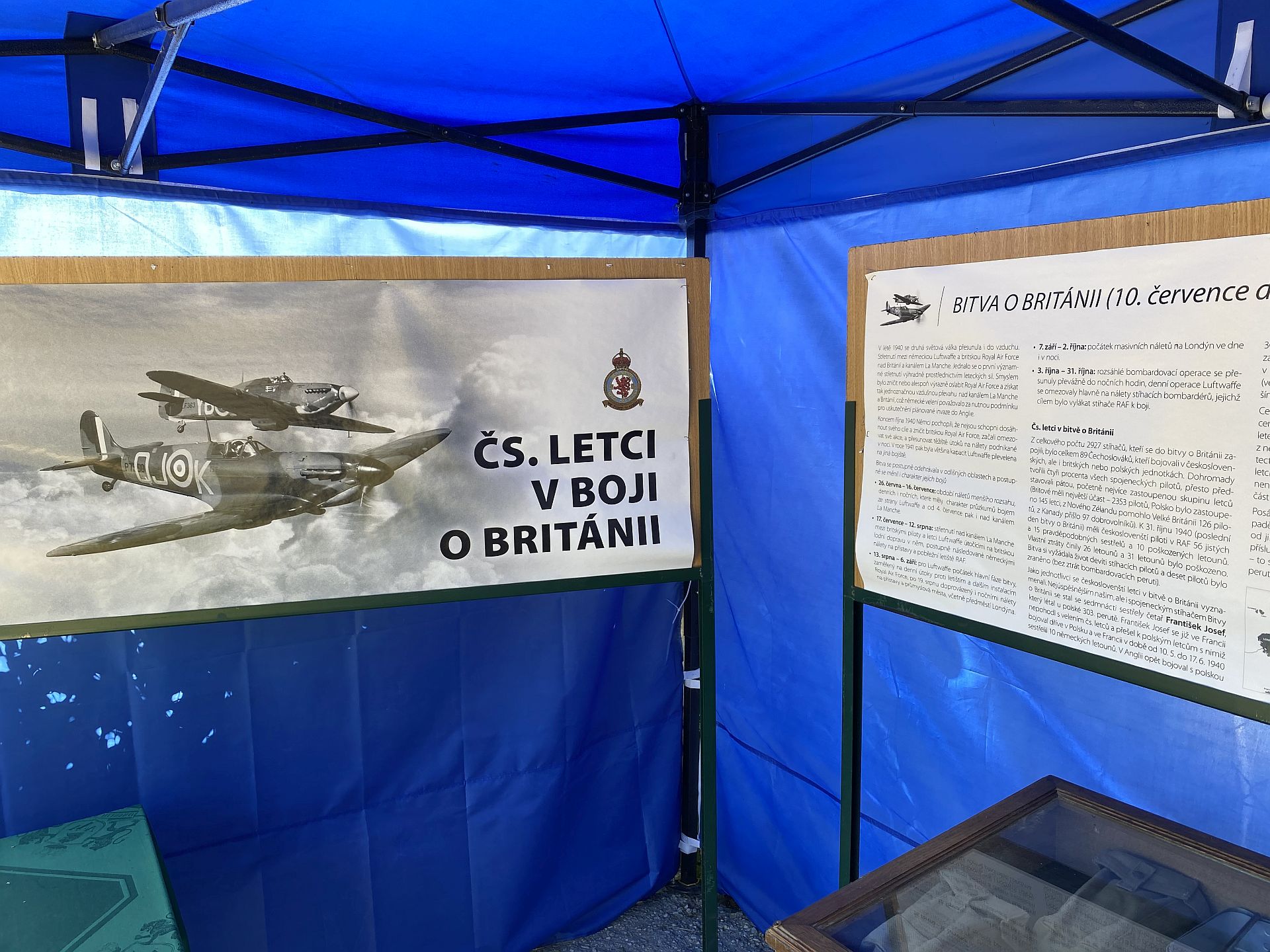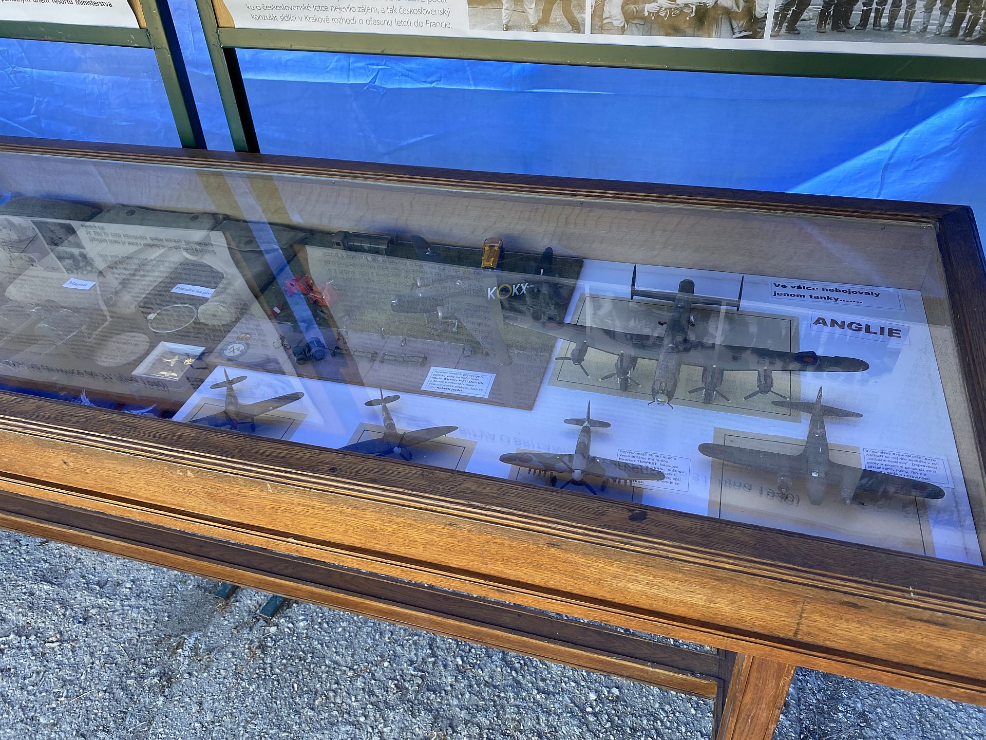 Využil jsem nádherného sobotního dopoledne prvního srpna k návštěvě Muzea na demarkační linii v Rokycanech. Mým hlavním zájmem bylo zhlédnout expozici, kterou rokycanská jednota ČSOL připravila u příležitosti kulatého výročí Bitvy o Británii, přesněji řečeno účasti našich letců na těchto slavných bojích. Už její název zněl lákavě: Výstava Čs. letci v boji o Británii. Našel jsem ji poměrně záhy po vstupu do areálu vedle pokladen. Pod stylově modrým přístřeškem se nacházelo celkem pět panelů s informacemi. Dále vitrína. V té byly k vidění modely letadel a předměty, vztahující se k působení ČS letců v RAF.