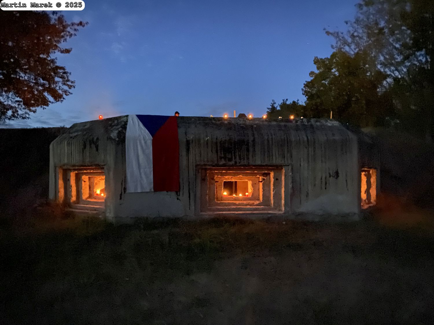 V sobotu dvacátého září se mnoho objektů bývalého československého opevnění rozzářilo do večerní tmy. Stalo se tak v rámci jubilejního desátého ročníku akce Světla nad bunkry. Tato akce představuje jedinečné připomenutí československého opevnění z období první republiky, kdy se linie pevností stala symbolem obranyschopnosti státu. Je věnována především výročí mobilizace ČS armády z druhé poloviny osudného září 1938. Během večerního programu jsou vybrané bunkry a sruby nasvíceny svíčkami či reflektory. Tím vzniká působivá atmosféra kontrastu světla a tmy, která zvýrazňuje architekturu betonových staveb včetně jejich historického významu. Událost propojuje vojensko-historické nadšence, pamětníky i širokou veřejnost. Vytváří prostor pro setkání s tradicí, vzděláním a také úctou k minulosti. U nás v západních Čechách se zpojilo například Muzeum československého opevnění v Kladrubech, v těsné blízkosti kladrubského kláštera. Nebo objekt staršího typu z roku 36 v obci Všekary nedaleko Holýšova, který provozují členové Klubu vojenské historie (KVH) Hraničářský prapor 6 „Sibiřských úderníků“. Právě ten jsem v sobotní podvečer navštívil.
